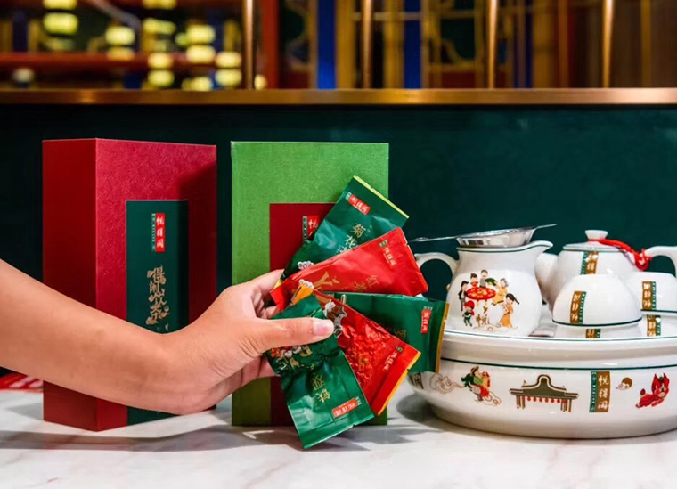 兩種對比強烈的紅色和綠色,是從西關建筑中滿洲窗提取出來,識別度極高,品牌感極強。