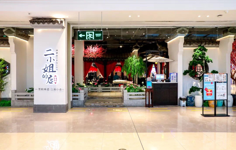 如:二小姐的店,品深餐飲設(shè)計將通過傳統(tǒng)江南園林的元素如廊、欄桿,窗等引入室內(nèi)設(shè)計,顏色上大面積的藍(lán)綠色與中國紅撞色,形成了女性的溫婉與時尚美的特征。大多數(shù)顧客路過店面都會多看一眼,且很愿意到店去體驗!
