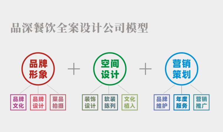 并總結為6個方面的內容: 1、餐飲品牌定位;2、餐飲品牌命名;3、餐飲品牌文化(品牌故事);4、餐飲品牌形象設計; 5、餐飲品牌空間裝飾設計;6、品牌整合營銷推廣體系。