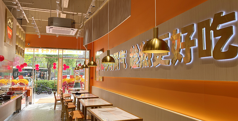 4、快餐面積小,客單價低,門店房租成本高。連鎖快餐店需要快速回收成本,一定要嚴控裝修成本,800元每平米能做到,就堅決不花1000元。連鎖門店的裝修盡量標準化,模塊化,施工工藝簡單,縮短施工周期,實現1個月之內迅速交付。