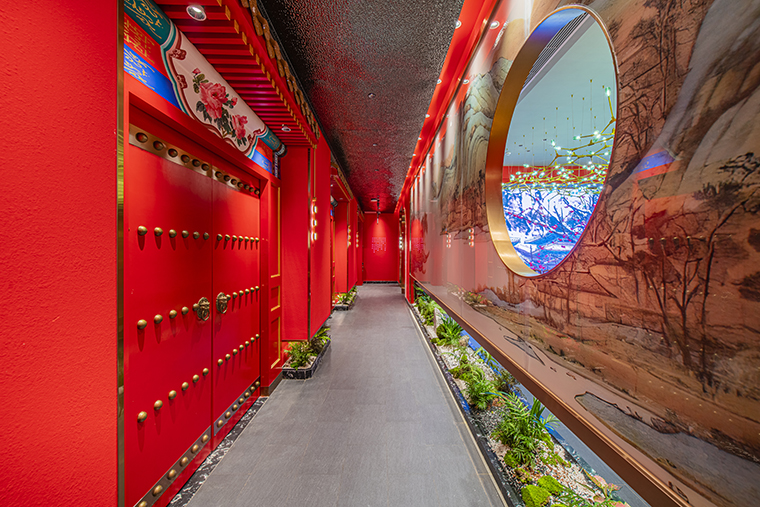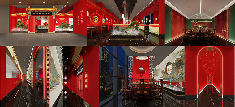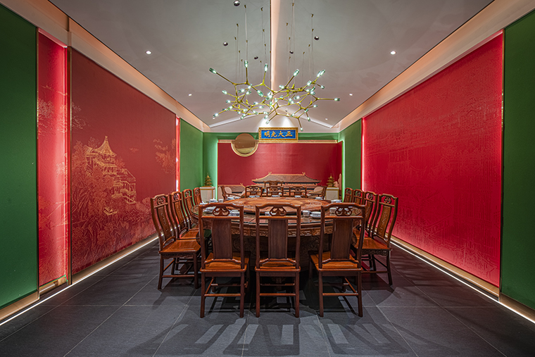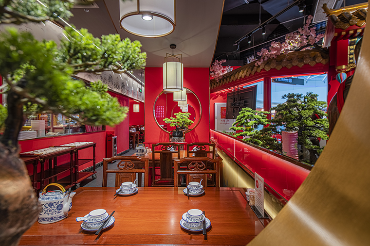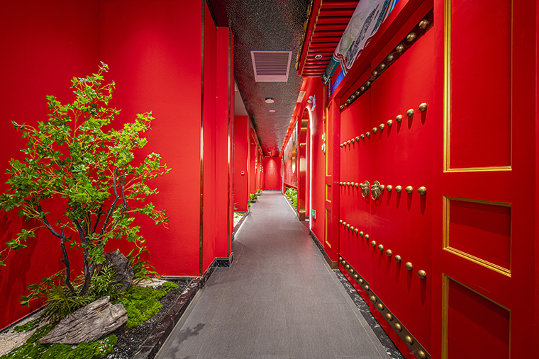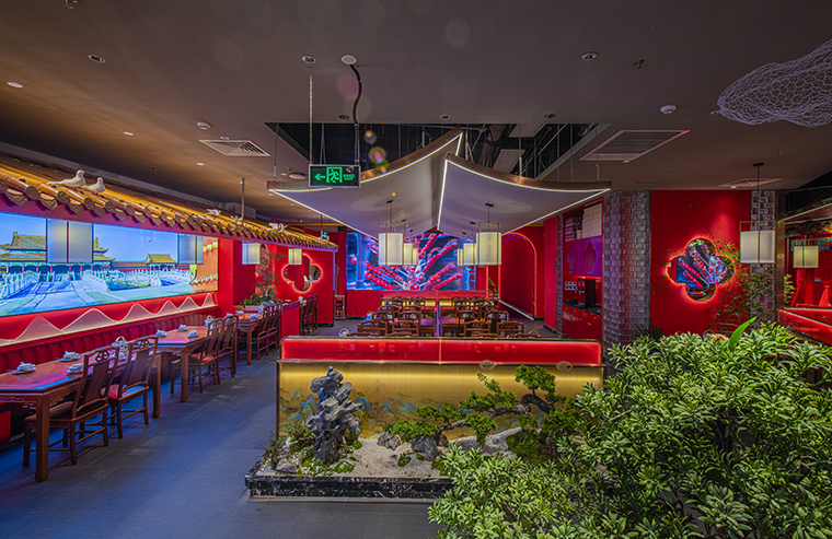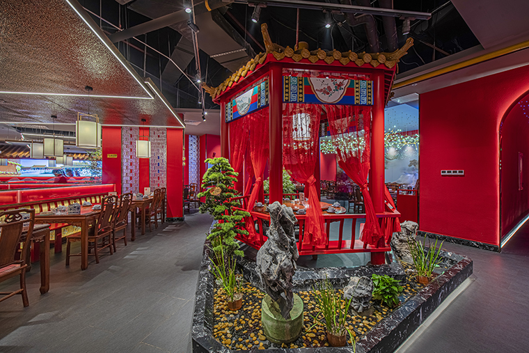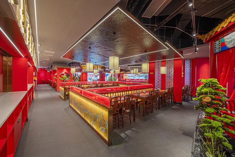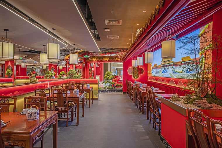 1、本項(xiàng)目為京味張東莞大朗碧桂園里悅里店,總面積約829平方米。用中國(guó)紅強(qiáng)化品牌內(nèi)含的北京皇城文化,令人印象鮮明;
